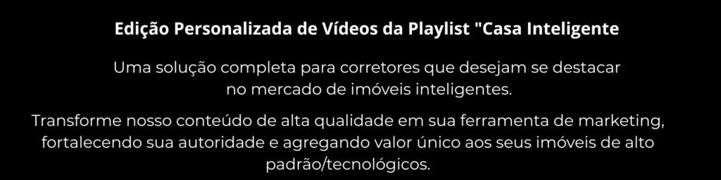 São mais de 50 vídeos  para você aprender do básico e pré-requisito com as demonstração dos dispositivos inteligentes que serão utilizados. É um produto exclusivo para corretores de imóveis, imobiliárias e o mercado de imobiliário entendem as funcionalidades, as aplicações e os benefícios. É um pacote de Vídeos que facilitam a compreensão, garantem consistência e oferecem a possibilidade real de fechamento dos negócios com clareza. Tudo o que faltava está na PLAYLIST EXCLUSIVA.